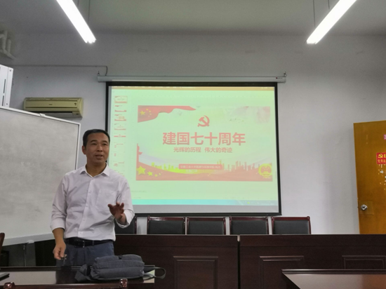 10月21日下午,1946伟德国际源自英国党委书记以“建国七十周年——光辉的历程伟大的奇迹”为题,结合“不忘初心、牢记使命”主题教育学习调研和学院实际,为全体学生党员讲授了一堂生动的主题党课。