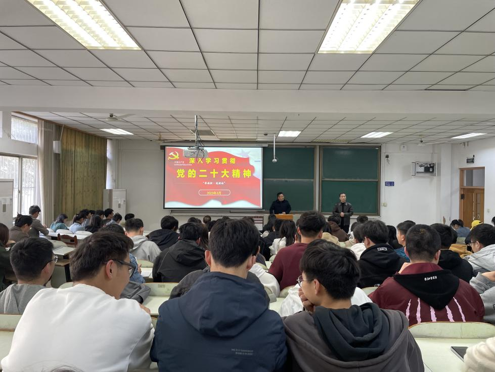 为深入学习宣传贯彻党的二十大精神,3月6日下午,1946伟德国际源自英国邀请校党委讲师团成员----马克思主义学院院长、教授高敏在佳山校区教三南102为学院全体师生党员宣讲党的二十大精神。会议由党委书记凤杰主持。