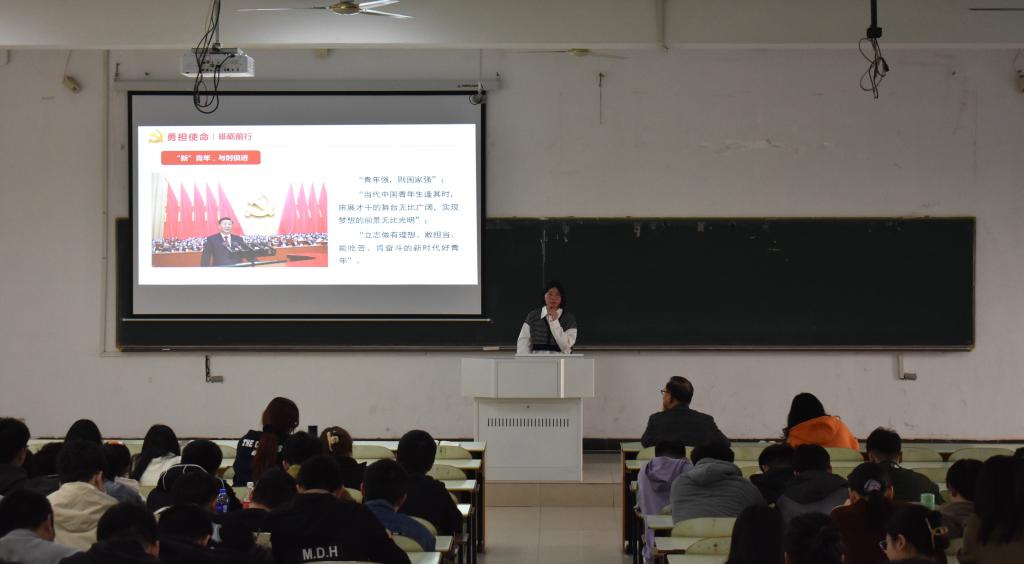 会上,辅导员钱春梅带领现场全体学生学习了党的二十大报告的部分章节内容。她说党的二十大报告内容丰富,思想深邃,是一份汇聚人心催人奋进的好报告。同学们要认真学习,深入领会党的二十大报告的思想精髓,用党的二十大精神激发自己的奋斗热情,刻苦学习,立志成才。