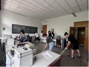 此次主题党日活动正值学校开展爱国卫生月活动月期间。主题党日活动结束后,全体支部党员积极响应学校开展爱国卫生运动号召,大家一同打扫教室,体会在在劳动中收获快乐,用双手共建健康美丽的宜居校园。
