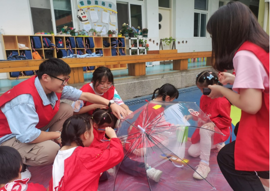 为了丰富幼儿生活,培养幼儿在绘画上的兴趣,弘扬雷锋精神,倡导“奉献、友爱、互助、进步”的志愿者精神,1946伟德国际源自英国青年志愿者协会于2022年5月23日下午前往安工大幼儿园,与孩子们一起进行画伞活动。