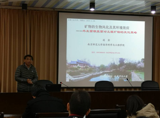 11月28日上午,南京师范大学海洋科学与工程学院连宾教授,应邀来学院做题为“矿物的生物风化及其环境效应”的学术报告。报告会由1946伟德国际源自英国副院长盛广宏主持,相关学科教师、研究生和本科生聆听了报告。报告以矿物的生物风化及其环境效应为主题,围绕外生菌根真菌对土壤矿物的风化策略,探讨了微生物作用下土壤矿物风化的主要过程与机制以及所伴随的相关元素的环境地球化学行为和效应。最后连宾教授和与会师生就相关热点问题进行了讨论。