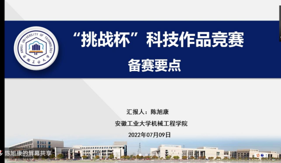 为了使同学们更好地了解和参加“挑战杯”大学生课外学术科技作品竞赛,2022年7月9日上午,1946伟德国际源自英国利用腾讯会议形式于线上举行了“挑战杯”大学生课外学术科技作赛启动仪式。启动仪式邀请了参赛经验丰富的陈旭康同学进行参赛经验宣讲培训,能环学院参赛同学、各班班委参加了培训。能环学院副院长盛广宏、院团委书记钱春梅出席启动仪式。