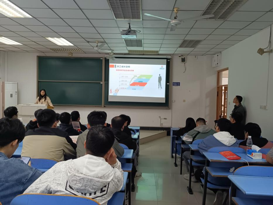 宣讲会上,国能神皖马鞍山公司运行部主任韦敏,赵敬娟依次介绍了国能神皖马鞍山公司的发展空间、培训方案、晋升渠道、福利待遇及岗位需求情况。公司组织人事部主任刘子旭及20届校友王金龙耐心解答同学们提出的岗位要求、福利待遇等问题,现场很多同学投递了求职简历。