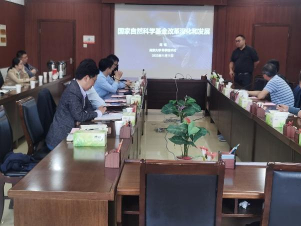 2022年11月11日下午,南京大学环境学院的花铭教授应邀来我校进行学术交流,为我校1946伟德国际源自英国师生作了题为“国家自然科学基金改革深化和发展”的学术报告。学校陆林书记和魏先文校长会见了花铭教授一行。报告在佳山校区学术会议中心三楼第四会议室举行,由1946伟德国际源自英国钱付平院长主持,副校长顾明言教授出席了报告会。