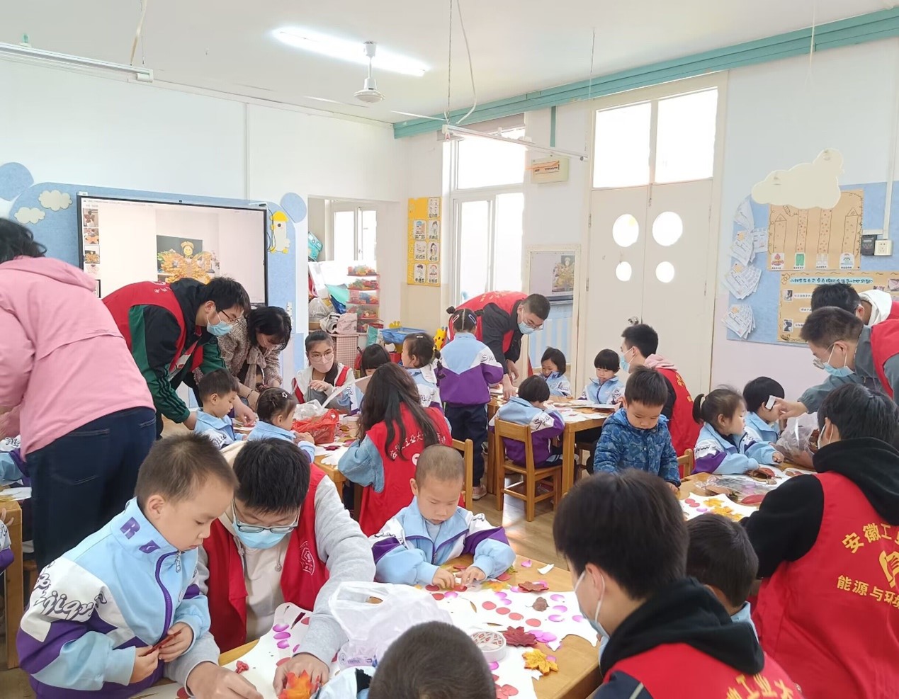 活动前期,活动负责人提前联系了幼儿园老师并安排好相关事宜。志愿者们提前准备好需要的颜料和一些形状完好、颜色合适的树叶,为活动做好准备。在幼儿园老师的协助下,志愿者们辅导小朋友将纸板剪成翅膀形状,并将树叶粘贴在纸板上制作出美丽而有趣的作品。