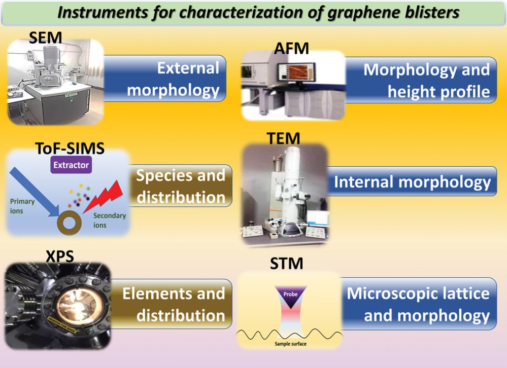 (石墨烯泡STM图像及泡形成机制示意图)
