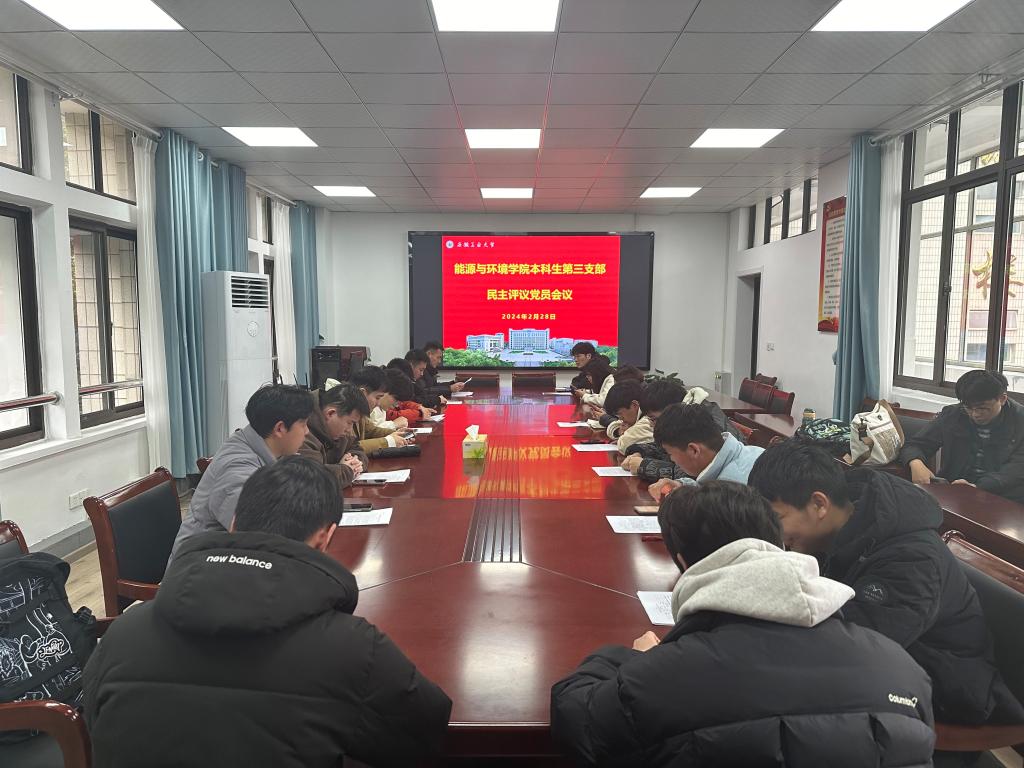根据校党委组织部关于开展2023年度民主评议党员工作的要求,1946伟德国际源自英国本科生第三支部于2024年2月28日在能源楼325召开民主评议党员工作会议。支部全体党员及非党员学生代表到会。会议严格按照评议内容要求和评议工作程序,开展党员民主评议。