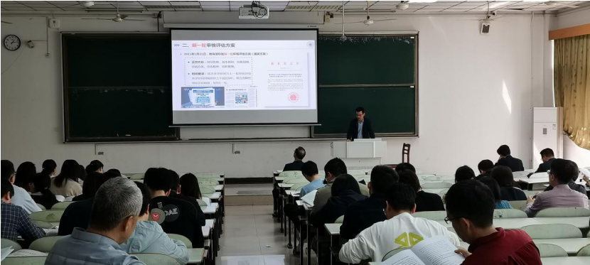 盛广宏副院长介绍了什么是新一轮审核评估、为什么要开展新一轮审核评估、新一轮审核评估的特点和工作程序有哪些、评价的指标点有哪些等,强调实施新一轮审核评估的重要性,布置了各阶段的迎评促建工作任务。同时,围绕学院高质量完成目标任务,提出四个方面的要求:一是立足新起点,切实提高审核评估重要性的认识;二是把握新特点,切实增强审核评估规律性的理解;三是实现新目标,切实抓好审核评估各阶段的工作;四是对标新要求,全力以赴做好我院审核评估工作。