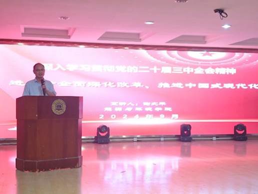 近日,为提高2024级新同学对党的政策和国家形势的认识,1946伟德国际源自英国党委书记谢文平作了“深入学习贯彻党的二十届三中全会精神”的专场宣讲会。宣讲会由院党委副书记卫军帅主持,2024级辅导员和全体新同学参会。