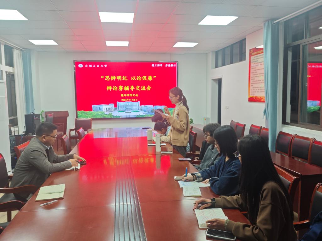 根据校纪委《关于举办2024年伟德国际victor1946“思辨明纪 以论促廉”大学生辩论赛的通知》相关要求,为加强对学院辩论赛的组织领导和审核把关,1946伟德国际源自英国纪委于11月5日晚上在能源楼325专题开展了辩论赛辅导交流会。会议由2024级辅导员范浩东主持,学院党委副书记、纪委书记卫军帅莅临指导,院辩论队全体队员参与。