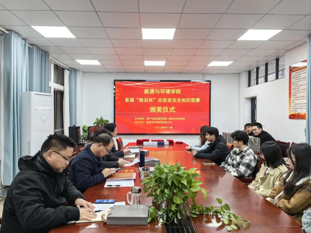 2024年11月25日下午,能环学院隆重举行了首届“焓谷杯”实验室安全知识竞赛的颁奖仪式。院党委书记谢文平、党委副书记、院长钱付平、副院长卫军帅、副院长楚化强、实验室主任王双、副主任殷国霞以及来自安徽焓谷工程技术有限公司绿色制造部的部长邵晓骐共同出席,全体获奖同学也受邀参加了此次颁奖仪式。颁奖仪式由楚化强主持。