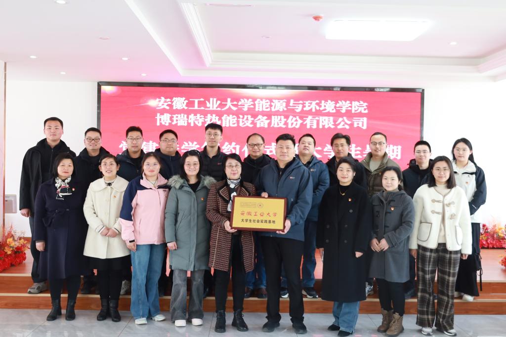 交流会上,博瑞特热能设备股份有限公司董事长徐智明对伟德国际victor1946一行的到访表示热烈欢迎,详细介绍了企业发展历程、核心技术与人才需求。截止目前,2025届安工大毕业生有六人签约博瑞特。顾明言指出,伟德国际victor1946始终秉持"高标准、严要求"的办学传统,感谢博瑞特与安工大的血脉联系,截至目前,已有17位安工大校友入职博瑞特,其中涌现出“宣州工匠”等多名技术管理高管骨干,希望以此次合作为契机,在人才培养、技术攻关、成果转化等领域开展深度合作,打造校企协同育人新范式。会上,顾明言代表学校为博瑞特热能设备股份有限公司进行"大学生社会实践基地"授牌,能环学院党委书记谢文平与博瑞特热能设备股份有限公司共同签署党建共建协议书,双方与会人员合影留念。