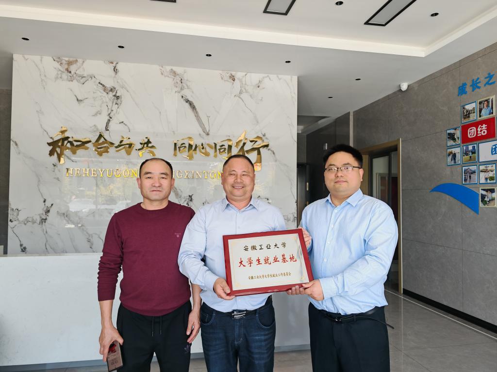 座谈会上,娄增介绍了安徽八鑫建设科技有限公司的建设、运营、产品和服务等基本情况,希望学校、学院能够为公司输送更多的优秀人才,在技术创新方面深入开展合作。卫军帅介绍了学院在专业设置、学科优势、师资队伍、人才培养等方面取得的成绩,就毕业生就业工作进行了深度交流。卫军帅表示安徽八鑫建设科技有限公司业务范围在创新节能环保工程建设等方面和学院毕业生培养方向有一定的契合度,具有很大的合作空间,希望今后校企双方进一步加强交流与合作。双方进行了“大学生就业基地”授牌。