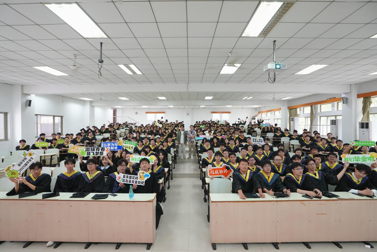 最后,黄乐远肯定了同学们在过去四年学习中取得的进步,回顾了同学们在校期间与学院、老师、同学们的点点滴滴。他寄语毕业生们:一是希望毕业生珍惜毕业时光,为校园生活留下美好印记;二是要严格遵守校规校纪,强化安全意识,妥善办理各项离校手续,做到文明、安全离校;三是要提升社会适应能力,在以后的学习工作中,学会应对、解决问题,不断成长,和不完美的自己和解,接纳不确定的环境。最后,师生共同留下了珍贵的合影,这些最真诚的祝福和最温暖的嘱托将成为毕业生难忘的“最后一课”。