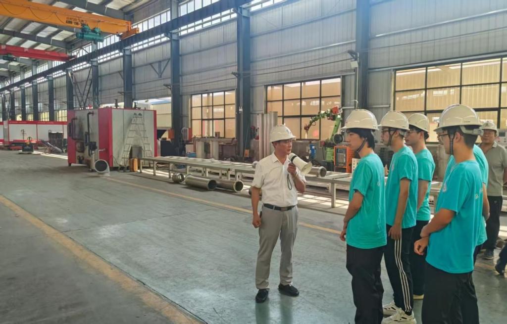 为提升学生对锅炉行业的全面认知,推动产教融合深度发展,2025年7月14日至18日,1946伟德国际源自英国贵宏暑期实践队奔赴安徽省天长市贵宏锅炉公司,全面探索锅炉行业从研发设计、原料采购、生产制造到质量检测、市场营销及售后服务的全流程环节,形成理论与实践深度融合的行业认知体系。