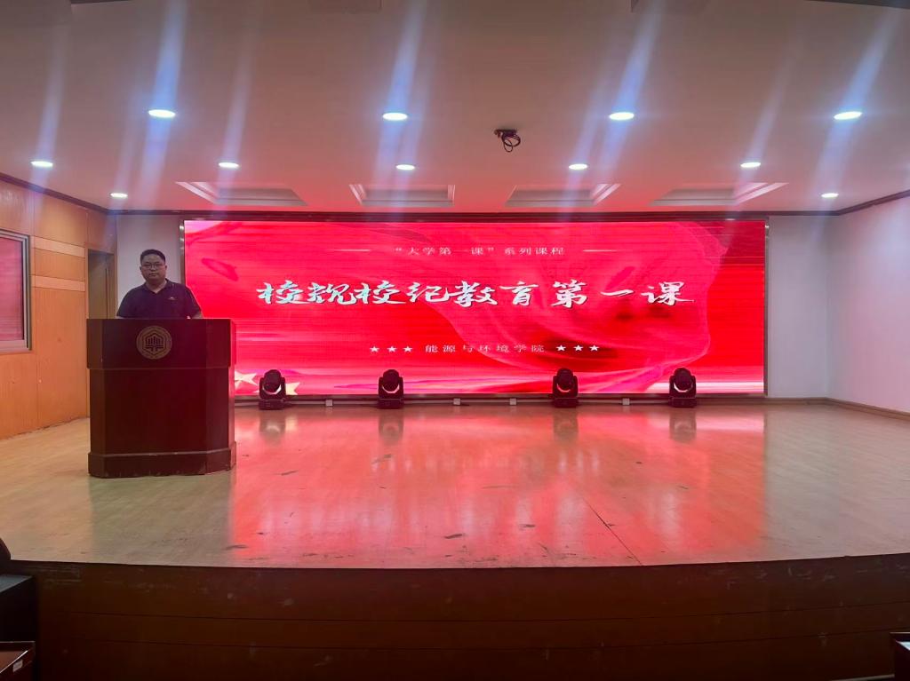 在“安全教育第一课”中,卫军帅从现实案例切入,深刻阐述了校园安全的重要性和日常防范的紧迫性,围绕防诈骗、交通安全与用电规范等重点领域作了细致讲解。他特别强调,每一位同学的安全成长都是能环“八好之家”建设的基石,并呼应“能环学子说”中“保安全”为首的要求,鼓励同学们强化自我保护意识,遇到困难及时向老师、同学和学校求助,共同营造安全、和谐的学习生活环境。