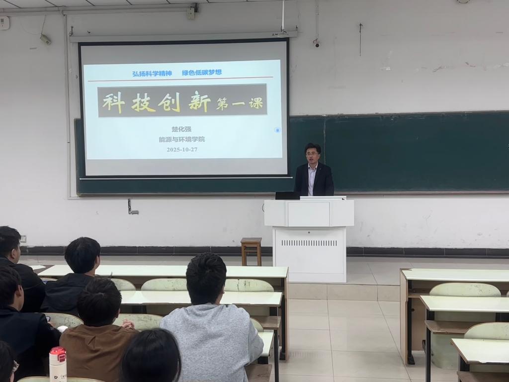 2025年10月27日下午,1946伟德国际源自英国“启航工程·大学第一课”系列活动之科技创新第一课在教三南203教室顺利举行。本次讲座由副院长楚化强主讲,面向全体2025级新生,开启了他们大学阶段的科学探索之旅。