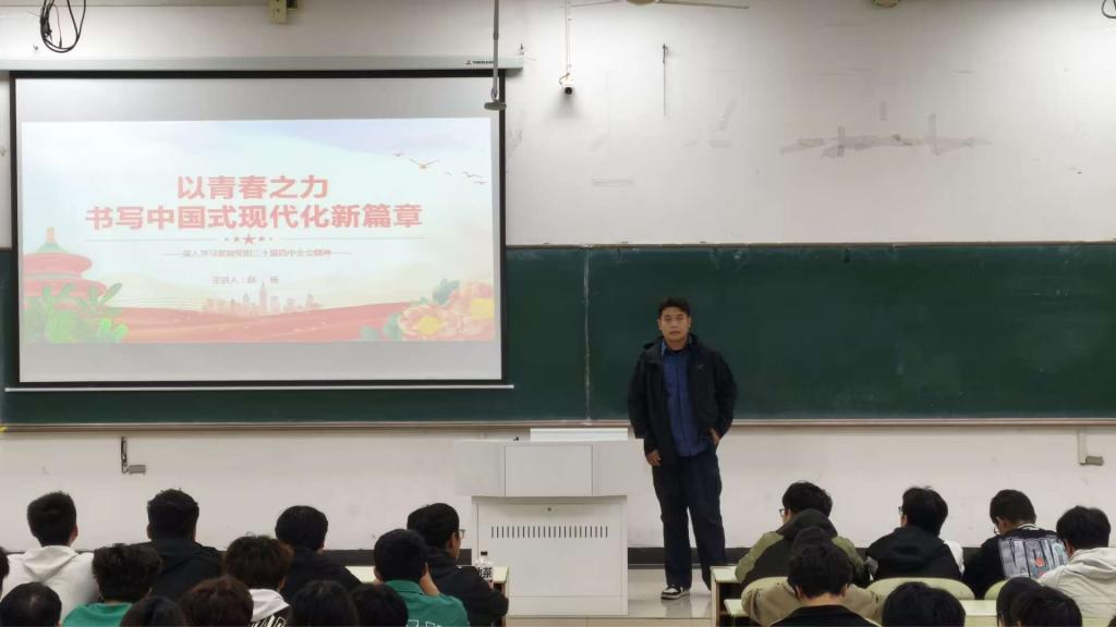 宣讲会上,赵杨首先带领同学们系统学习了《中共中央关于制定国民经济和社会发展第十四个五年规划和二〇三五年远景目标的建议》的核心内容,围绕国家发展新征程中的总体布局、战略安排和重点任务进行了深入解读。他强调2025级新生肩负着特殊的历史使命和时代责任。赵杨鼓励同学们要深刻认识国内外发展大势,准确把握国家在能源安全、绿色发展、生态文明建设等领域的战略方向,将个人理想融入国家发展大局,树立远大志向,筑牢信仰之基。