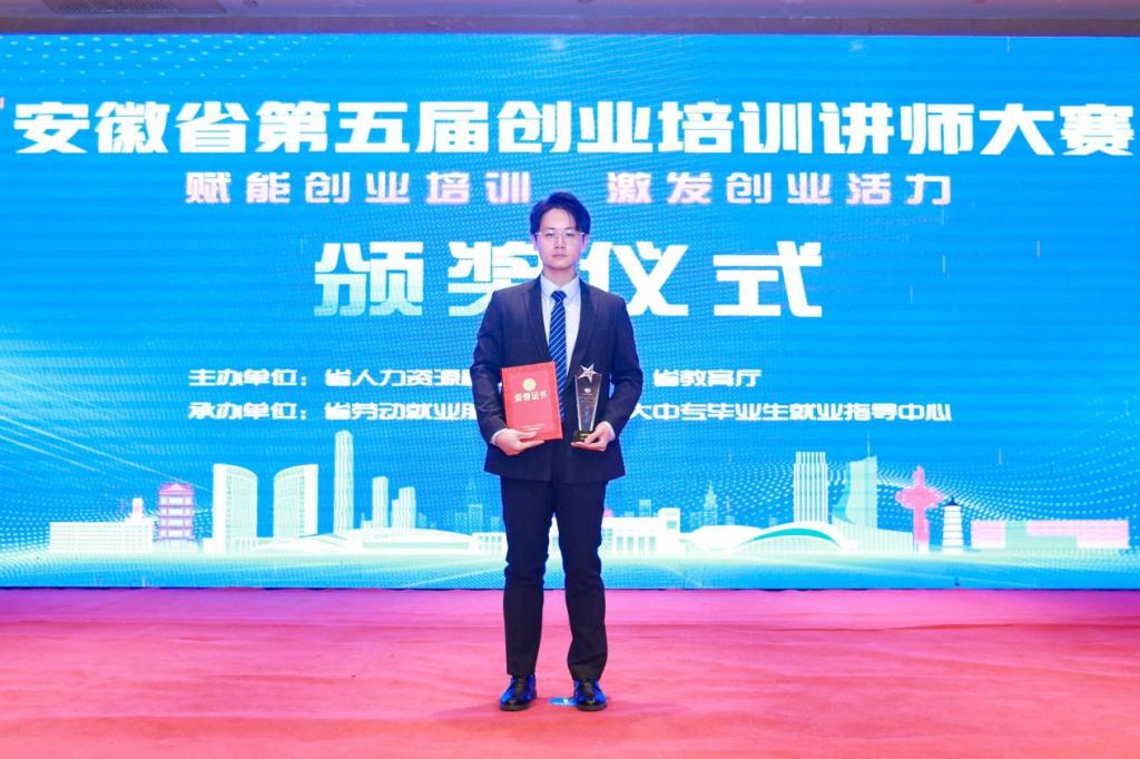 12月22日至24日,安徽省第五届创业培训讲师大赛在合肥举办。1946伟德国际源自英国教师黄乐远以总分第二名的好成绩荣获网络创业培训助理讲师组赛道二等奖。