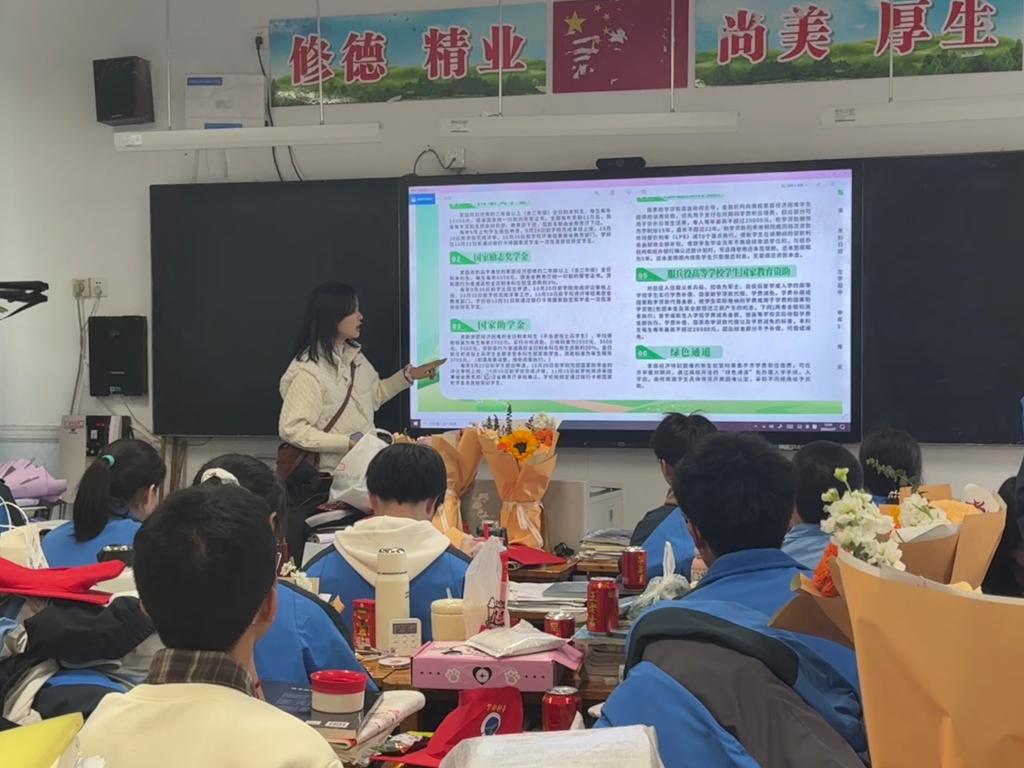 此外,学院积极选聘受助优秀学生担任“学生资助宣传大使”,组建宣传队伍。通过开展资助政策下乡、政策宣讲会、主题班会等形式,让“学生资助宣传大使”以亲身经历为素材,走进班级、走进宿舍、回到家乡,用“身边人讲身边事”的方式,生动解读资助政策,传递自立自强的精神力量。此举积极将“解困—育人—成才—回馈”的良性循环落到实处,进一步扩大了资助政策的知晓度和影响力。