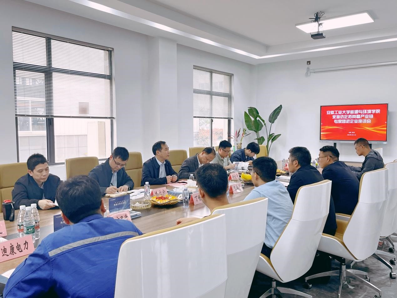 11日下午,凤杰一行首先来到海澄水务科技集团有限公司,与海澄水务科技集团有限公司、东方日升(安徽)新能源有限公司、安徽迪康电力科技有限公司和丽普汽车科技公司四家企业负责人进行产学研合作交流,并与部分校友开展座谈。交流会上,凤杰介绍了学校和学院的发展历程、学科优势以及在人才培养等方面所取得的成绩,表示海澄水务科技集团有限公司等四家公司业务范围与1946伟德国际源自英国的专业研究方向高度契合,具有很大的合作空间。凤杰感谢上述四家公司为安工大校友们提供的良好发展平台,希望今后能进一步加强合作,发挥各自优势,为国家的能源与环保事业做出新的更大贡献。