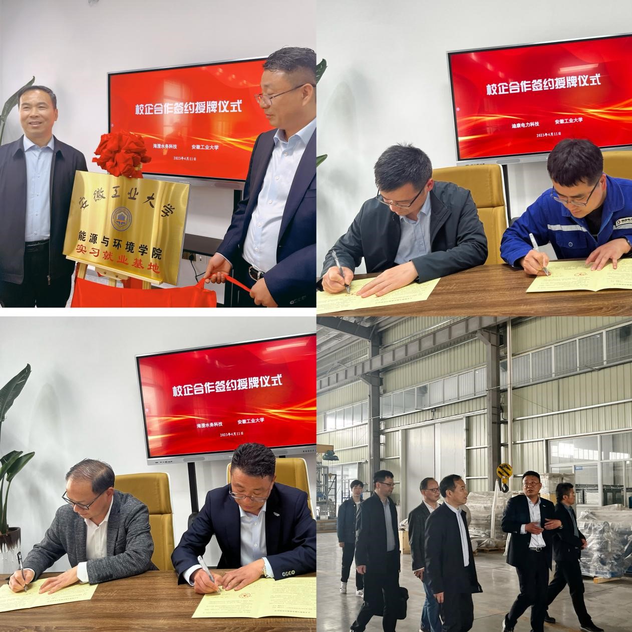 座谈会后,凤杰分别与四家企业代表共同为“1946伟德国际源自英国产学研合作基地”揭牌。学院党委副书记谢文平和教学副院长盛广宏分别与四家企业签订了大学生就业基地协议和实习基地协议。与会人员在企业负责人的陪同下一同参观了海澄水务科技集团有限公司和东方日升(安徽)新能源有限公司生产车间。