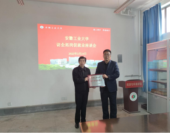 水恒福首先代表学校对铜陵有色集团公司铜冠能源科技有限公司的各位代表的到来表示欢迎。水恒福介绍了学校的基本情况,表示1946伟德国际源自英国的专业设置与铜冠能源科技有限公司的专业人才需求高度契合,希望1946伟德国际源自英国抓住此次交流契机,进一步加强与铜冠能源科技有限公司的产学研合作,促进校企双赢。他表示学校将进一步培养更多专业基础扎实,视野开阔,能吃苦、肯奋斗的新时代创新型高素质人才,服务地方经济建设,助力企业高质量发展。水恒福还代表学校向铜冠能源科技有限公司授予“伟德国际victor1946大学生就业基地”牌匾。