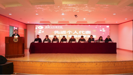 校先进班集体代表、能源与动力工程212班的查旭东同学就如何建设先进班集体、班级的管理制度建设、所取得的工作成效及对未来的展望发表了自己的见解。先进个人代表、环境工程201班保研湖南大学的宋慈同学上台分享了自己三年的学习成长历程,综合成绩第一、科创竞赛夺佳绩、社会实践展担当,用实际行动践行“有志者事竟成”。安徽省科技进步一等奖获得者、优秀教师代表环境系王育来老师总结了这一学年来所取得的成绩,展望了学院的未来发展,同时也对学生们进行了亲切勉励,希望同学们能成为一名为社会做出自身贡献的优秀大学生。