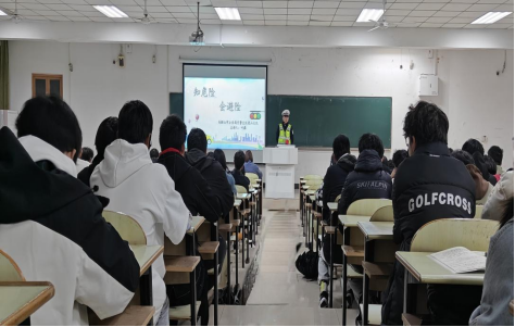 为增强大学生自我保护能力,培养尊法守规的良好交通习惯,织密织牢安全防护网,共筑平安校园,3月27日晚,由校安委会主办、能环学院承办的学校安全教育周系列活动---“知危险,会避险”交通安全知识讲座在佳山校区教三南103举行。本次讲座特邀请了花山交警大队叶磊讲授,学院2023级辅导员和全体学生参加。